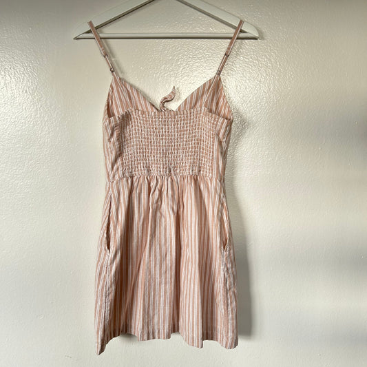 Striped Cotton Mini Dress peach pink white