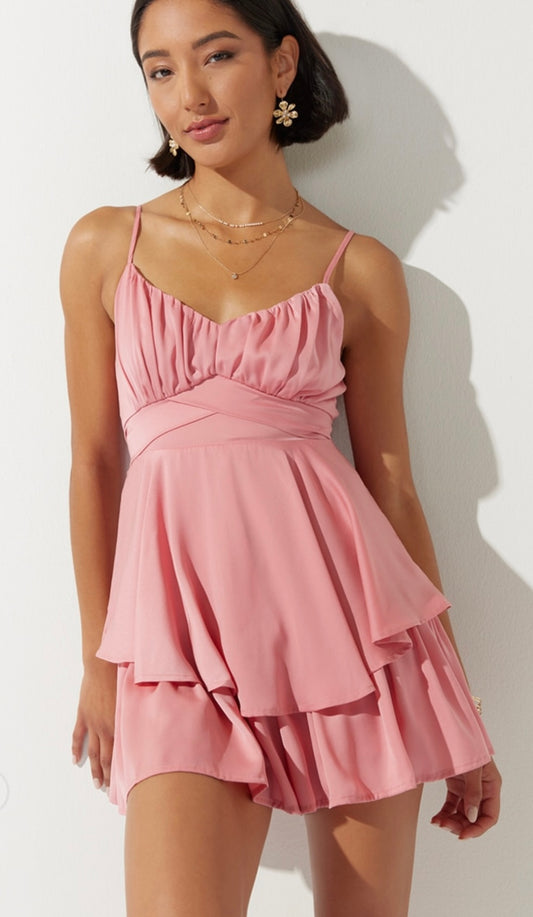 Pink Juliet Bow Back Satin Romper Dress