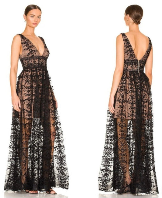 Megan Maxi Dress In Black Lace Tulle