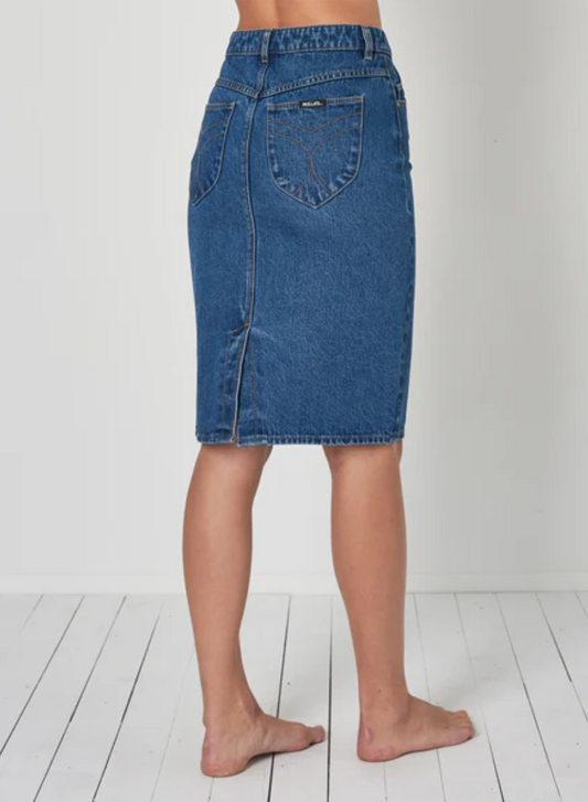 Denim Blue Knee-Length Button Up Pencil Skirt