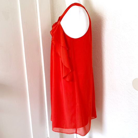 Chili Red Orange Keyhole Ruffle Tent Dress