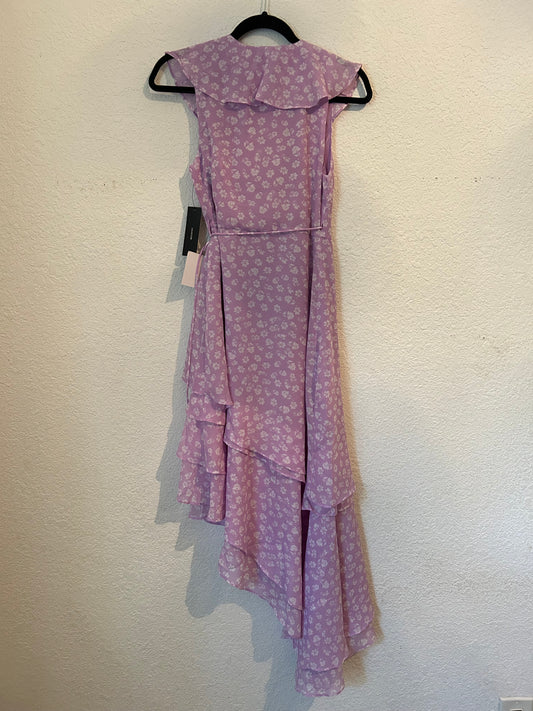Cornelia Lavender Floral Print Ruffled Wrap Midi Dress Purple